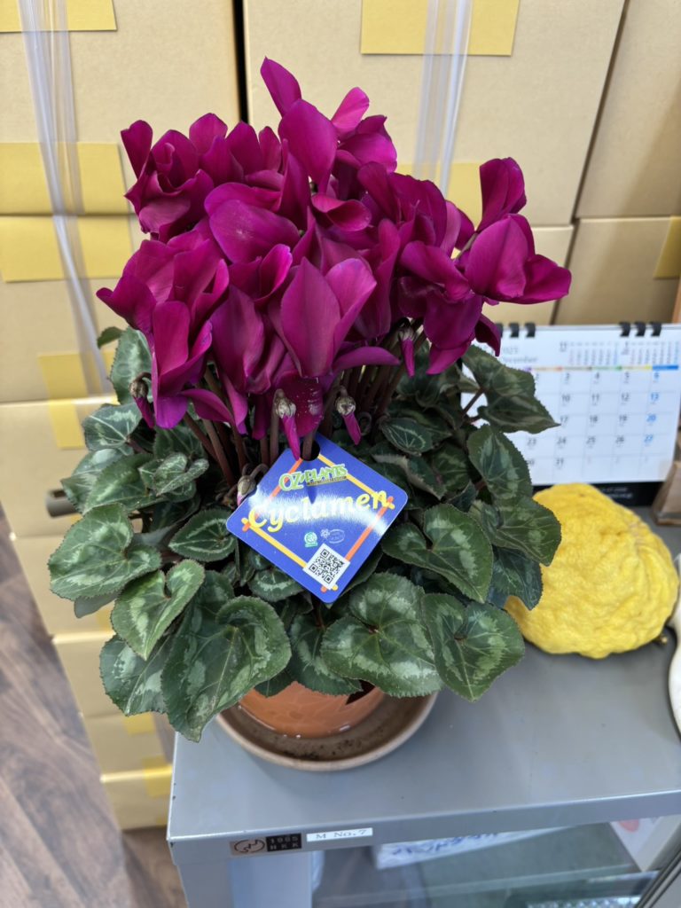 シクラメンを頂き、玄関に飾りました。
